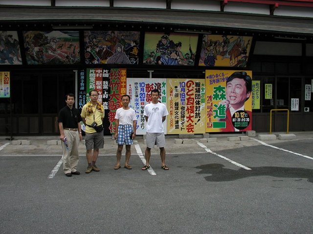 嘉穂劇場前にて(二日酔い気味の人も・・・)