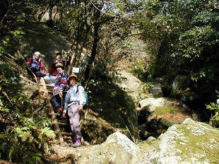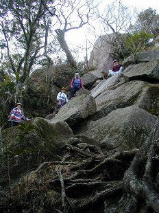 南登山口から登る 吊舟岩(洞窟)からの椿