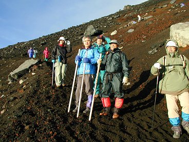 須走口、吉田口、河口湖口の登山口からの到達地点 |