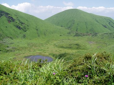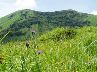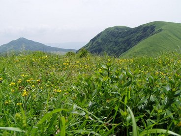 烏帽子岳と杵島岳とミヤコグサ(往生岳頂上より)