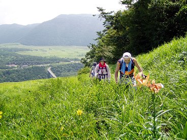 縦走終了・(牧ノ戸)、今から遊歩道を長者原へ