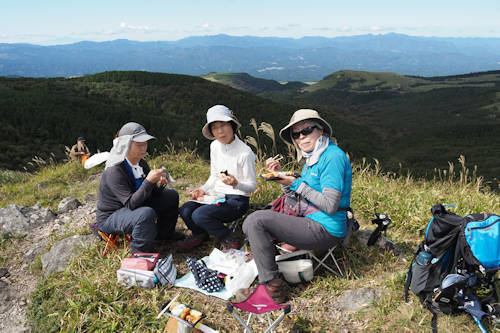 頂上から見る湧蓋山 こちらは阿蘇五岳
