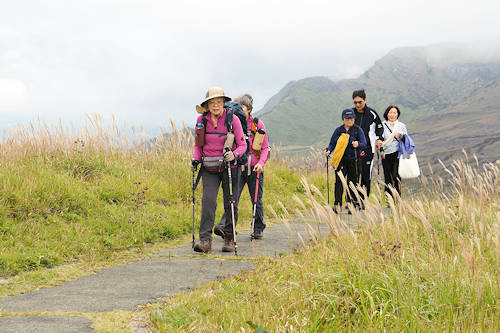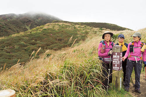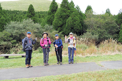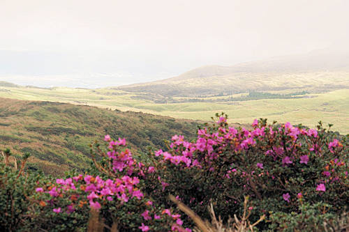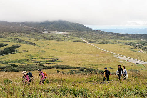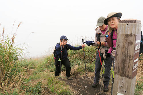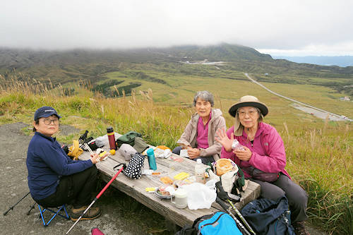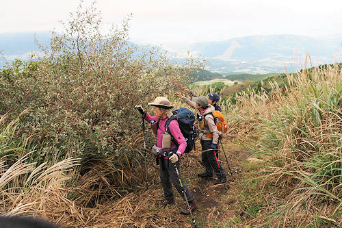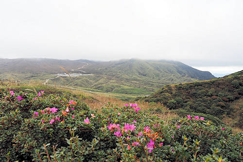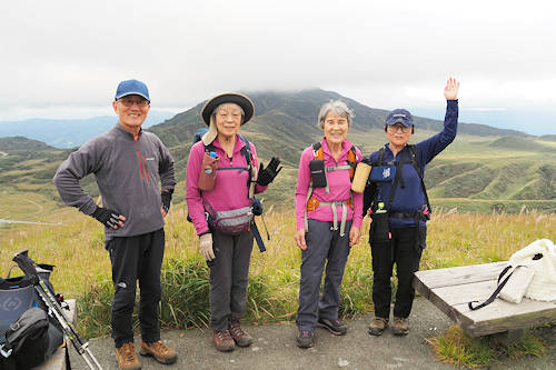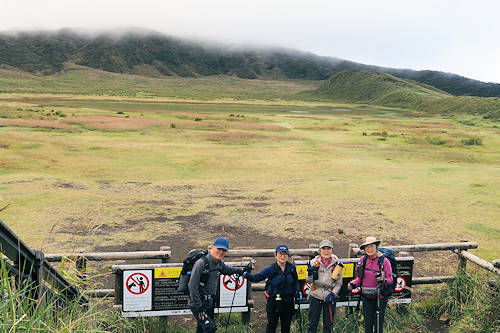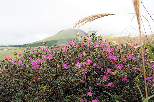 今の世の中、政治もですが自然までおかしくなっています。5月には咲かなかったミヤマキリシマが季節を間違えたの如くいたる所に咲いていました。頂上付近はガスで眺望はきかなかったものの涼しい秋の登山を楽しみました。それにしても、阿蘇は外国人が多い。(車は烏帽子岳から下りてきたところに止めました)