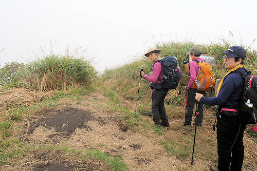 烏帽子岳頂上はガスで見えない 稜線から立野方面を望む