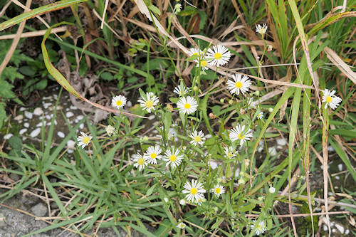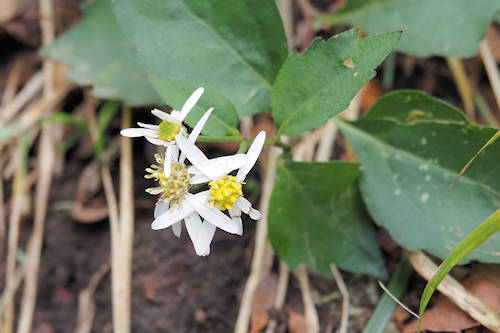 再びの上り(頑張ろうね)    足元にはキクの花が