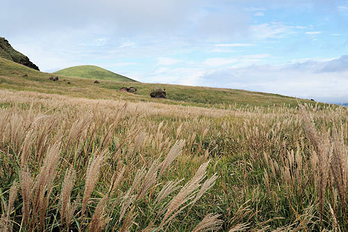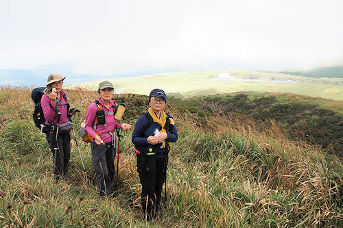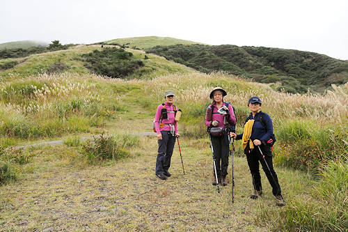草千里が見えてきた 秋らしい登山だった(‏‎13:22:16)バックは杵島岳