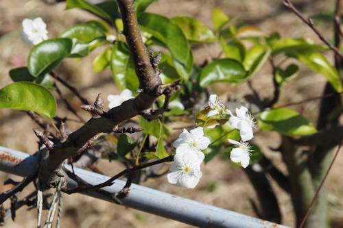 なぜか梨の花が咲いていた 正面の二の岳を目指して長い行列