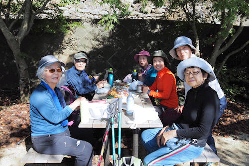 野出公園到着(12:50:22) 楽しいランチ(お菓子がいっぱい)
