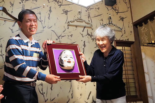ORIちゃんからツカモトさんに「お多福お面」の贈呈