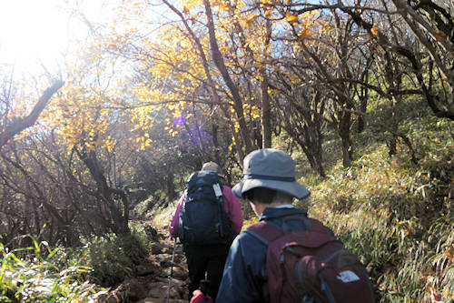 最初の休憩所(暑くなったので衣服調整) 星生山(紅葉は終わってるようです)
