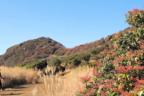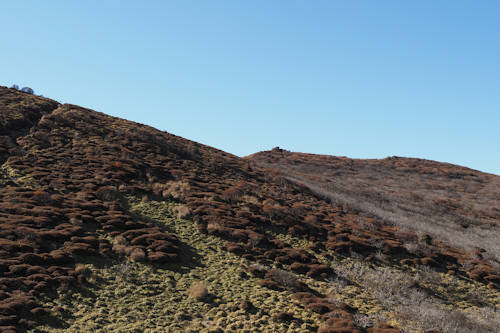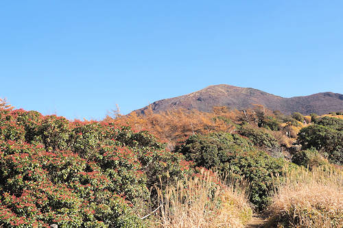 三俣山と登山道(少し赤いかな) 沓掛山を下りてきた