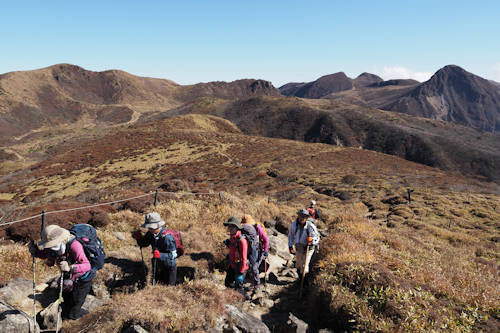 紅葉には遅いと思いながらも天気に誘われて九重連山へ、予想通り紅葉は終わりかけていたものの好天の気持ちいい初冬の登山が楽しめました。特に今回、ミルクロードや頂上付近からの幻想的な眺めが最高でした。