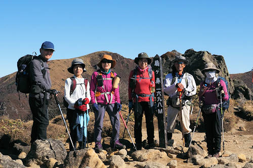 記念撮影(この後扇が鼻頂上へ) 頂上到着(10:38:22)