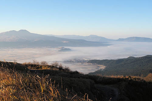 先週に続き阿蘇の雲海が見られた   瀬の本からの猟師山(正面の高い所まで登ります
