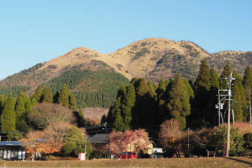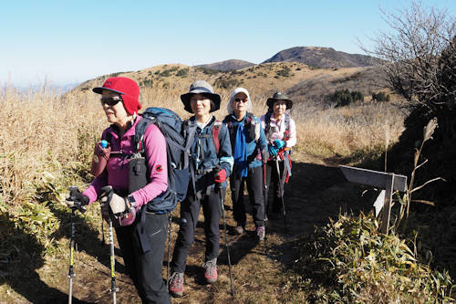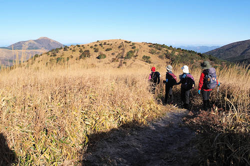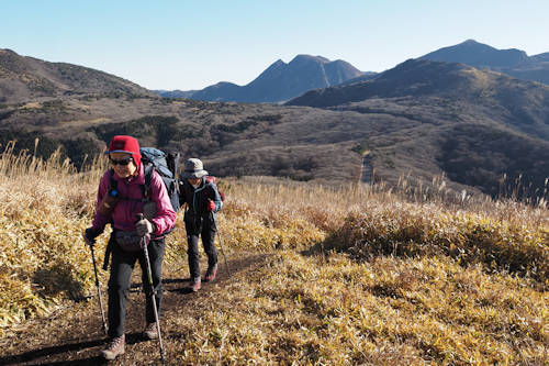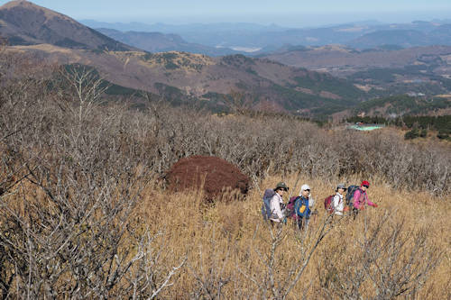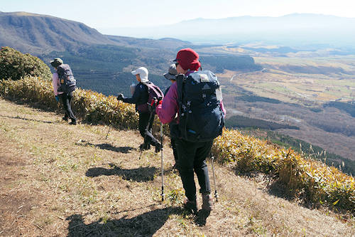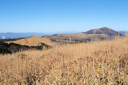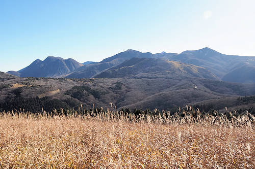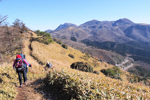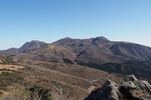 九重連山を前に見ながら次に向かう 右手に涌蓋山