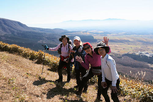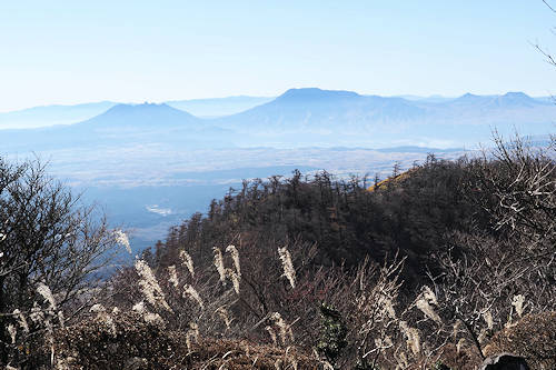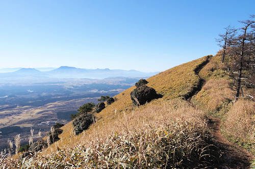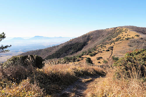 はるか向こうに阿蘇五岳が見える(正面は猟師山) スキー場との分岐点