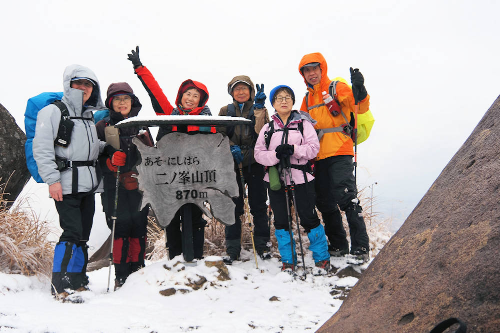 二ノ峯頂上で初めての積雪!(コバヤシさん嬉しそう)