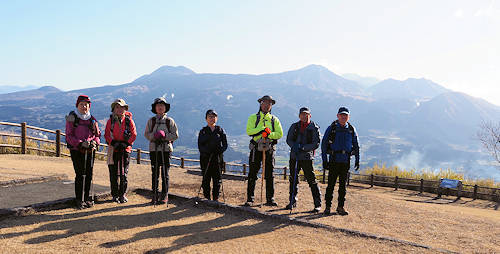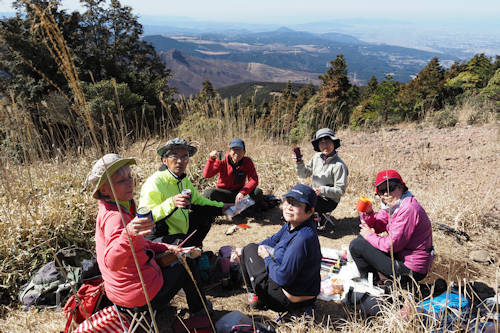 ランチは楽しい(ポカポカ) 阿蘇五岳を見ながら下山開始(‏‎11:28:24)