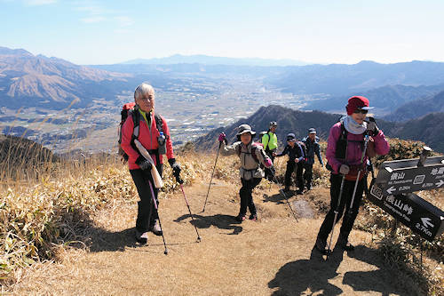 頂上が近づいた 最後の登りを踏ん張っている(バックは阿蘇五岳)